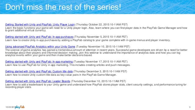 Getting Started With Unity And Playfab Unity Player Login